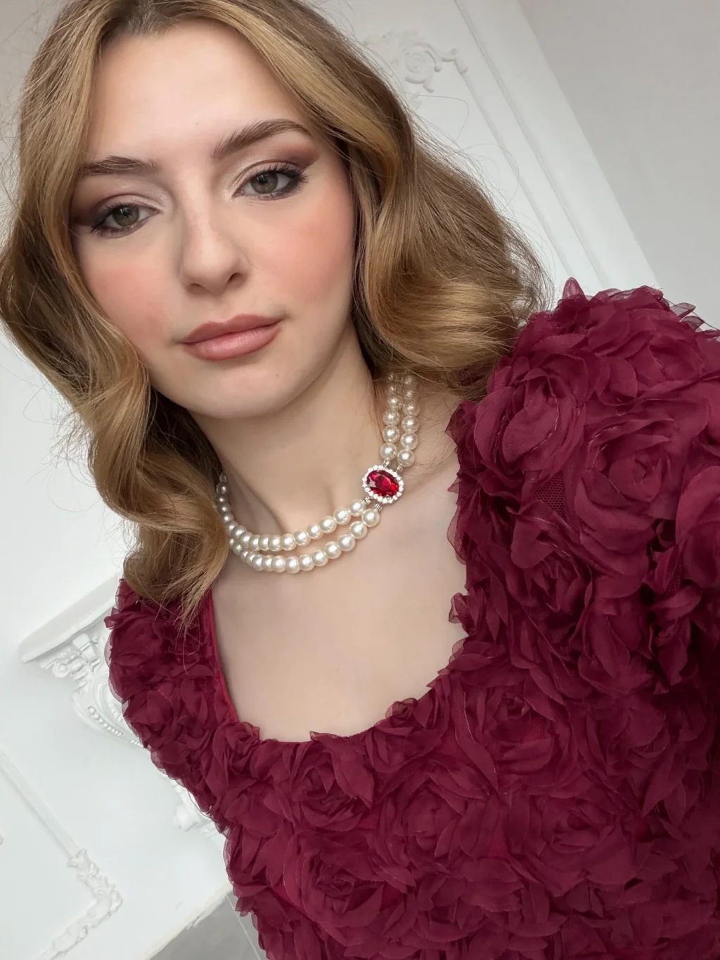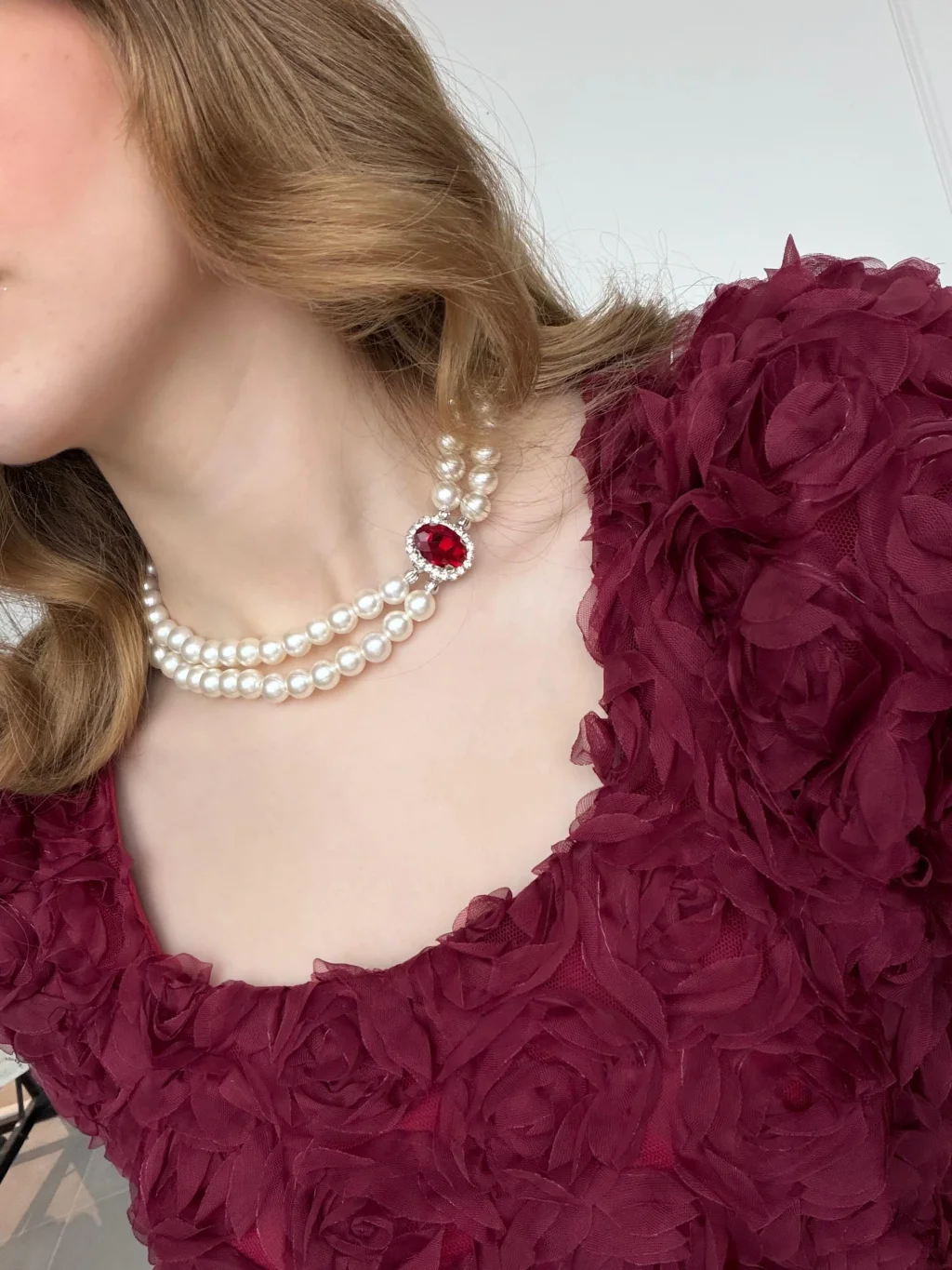 Ürün açıklamasıı Bordo taşlı iki sıra inci kolye