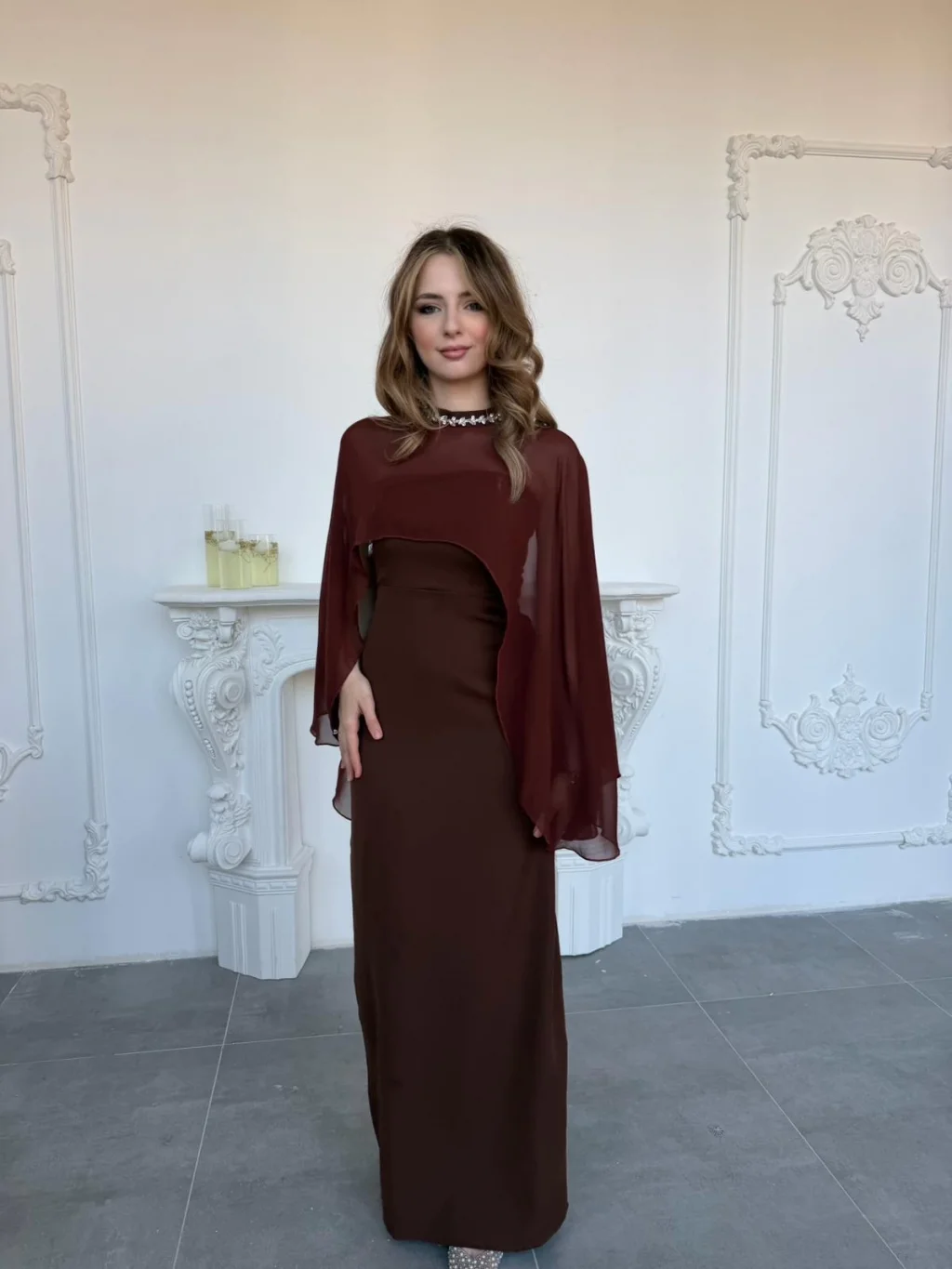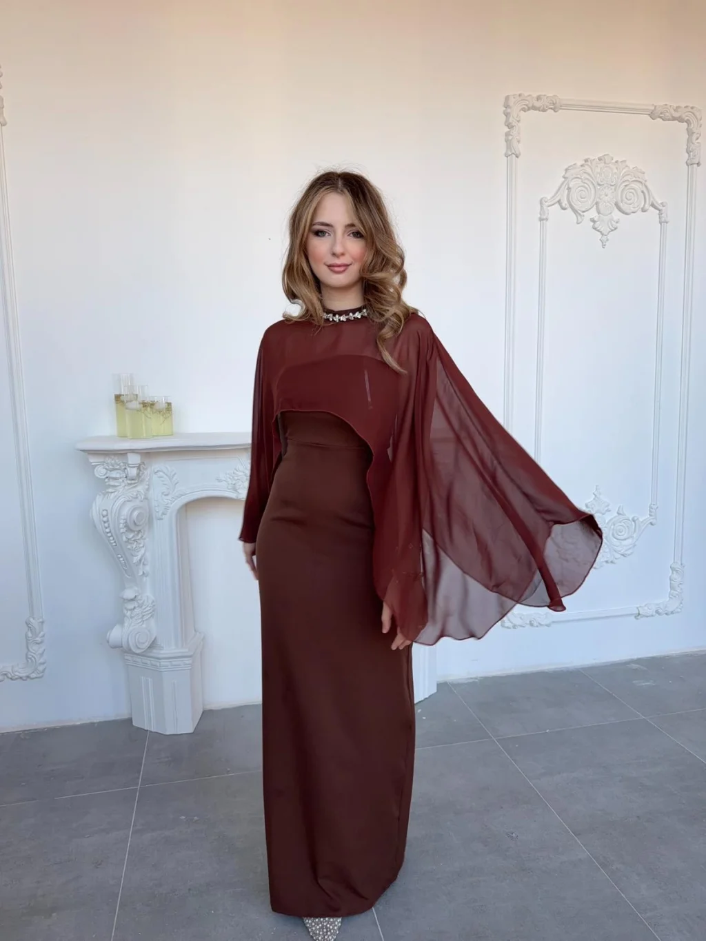 Zarafeti ve pratikliği bir araya getiren bu tasarım, iki parçadan oluşan özel formuyla gardırobunuzun vazgeçilmezlerinden olacak. İç kısmı straplez elbise formunda olan model, üzerine eklenen şifon şal detayıyla şıklığınızı tamamlıyor. İsteğe bağlı olarak çıkarılabilen şal, elbiseyi hem klasik hem de modern görünüme taşıyor. Dört farklı renk seçeneğiyle davetlerden özel günlere kadar her ortamda stilinizi yansıtabilirsiniz.