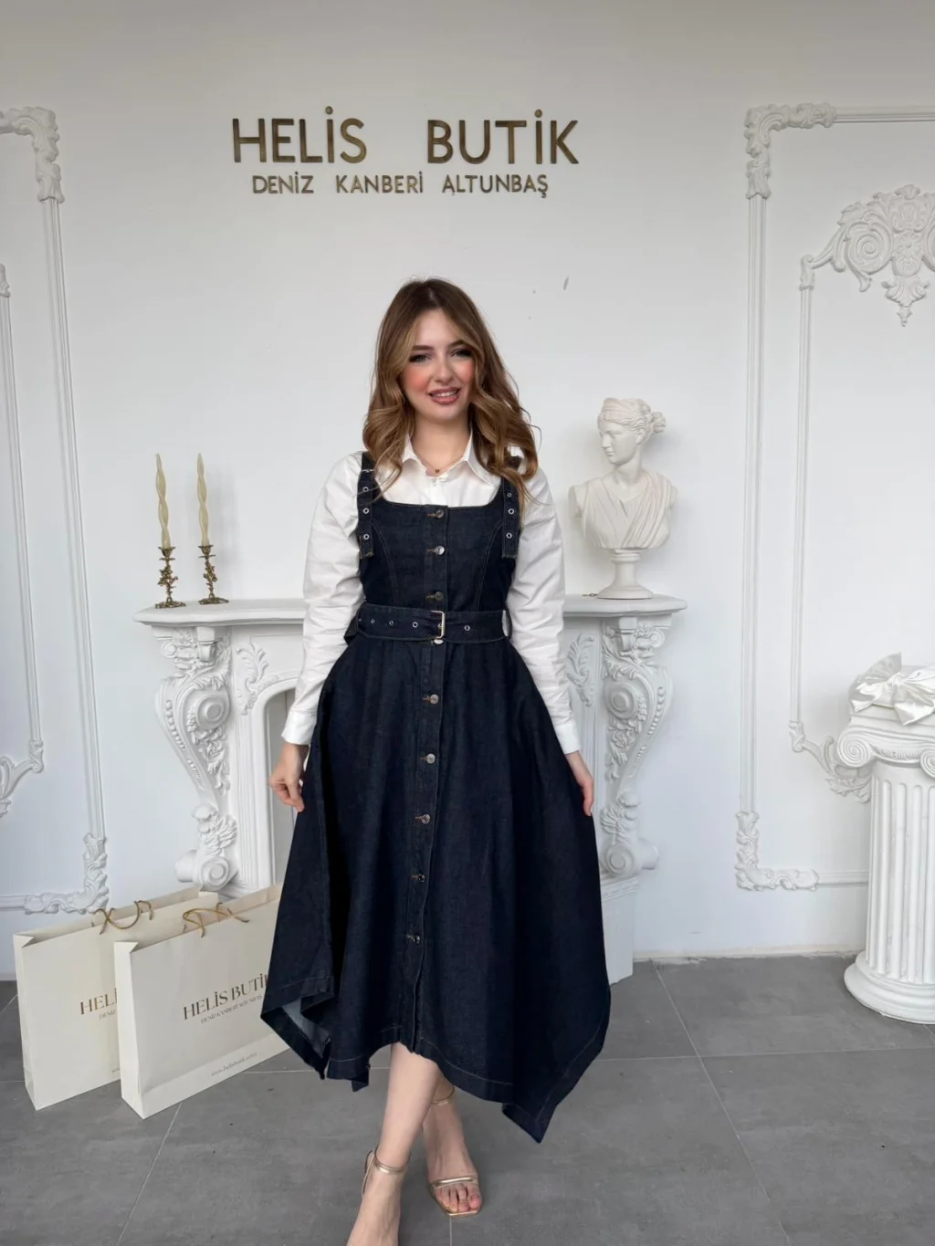 Asimetrik etek ucu, hareket halindeyken dinamik bir görünüm sunarken koyu yıkama tonu elbiseye asil bir hava katıyor. İster içine beyaz bir gömlek giyip ofis şıklığı yakalayın, ister trikolarla kış stiline uyarlayın. Her haliyle gardırobunuzun en iddialı ve zamansız parçası olmaya aday.