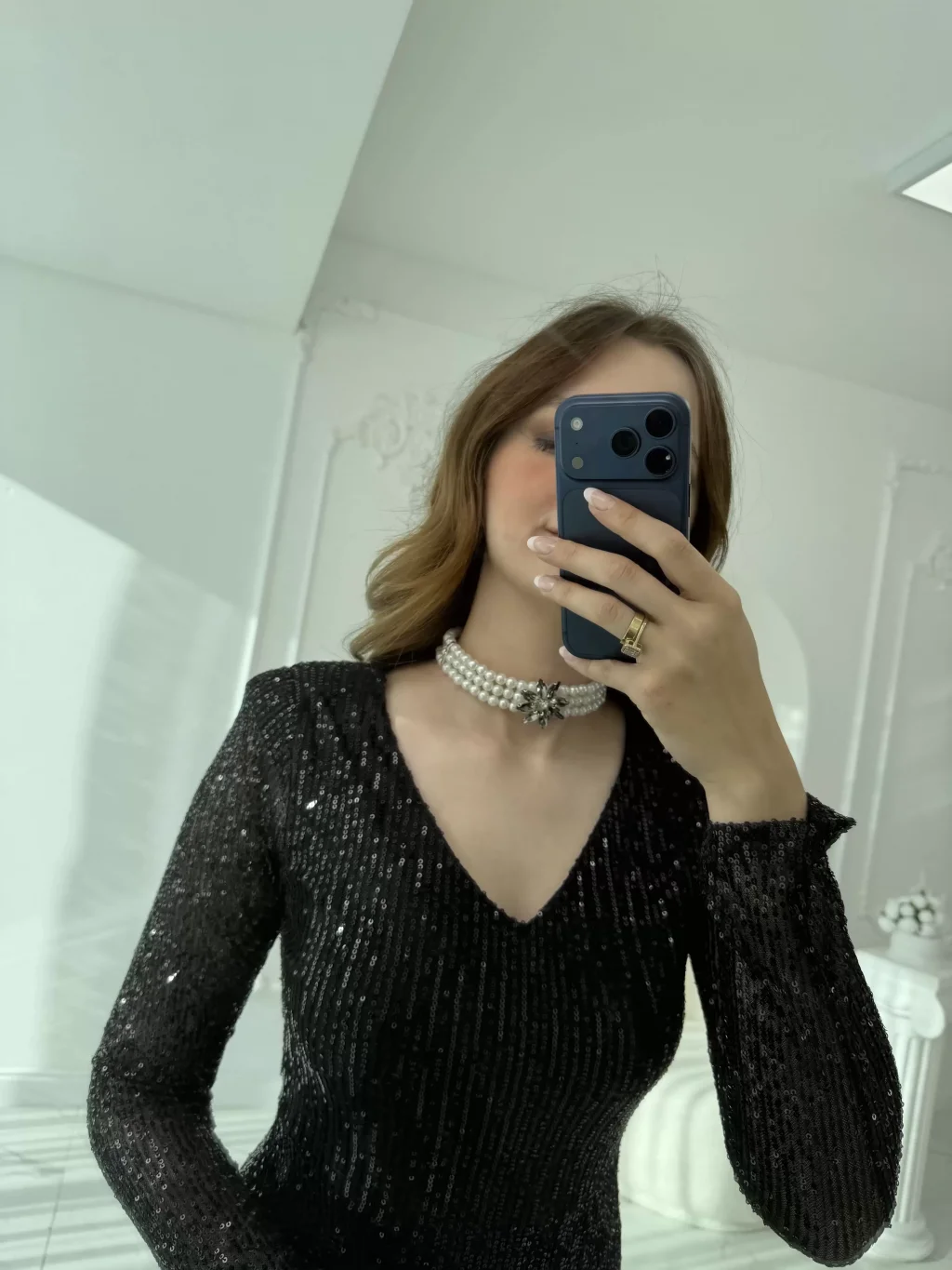 Füme Çiçek Taş Detaylı İnci Choker