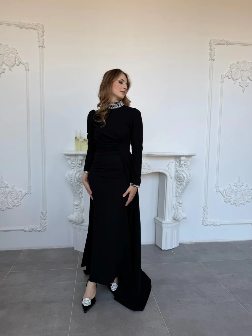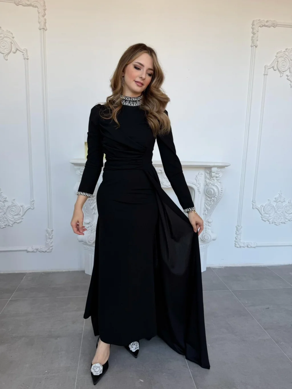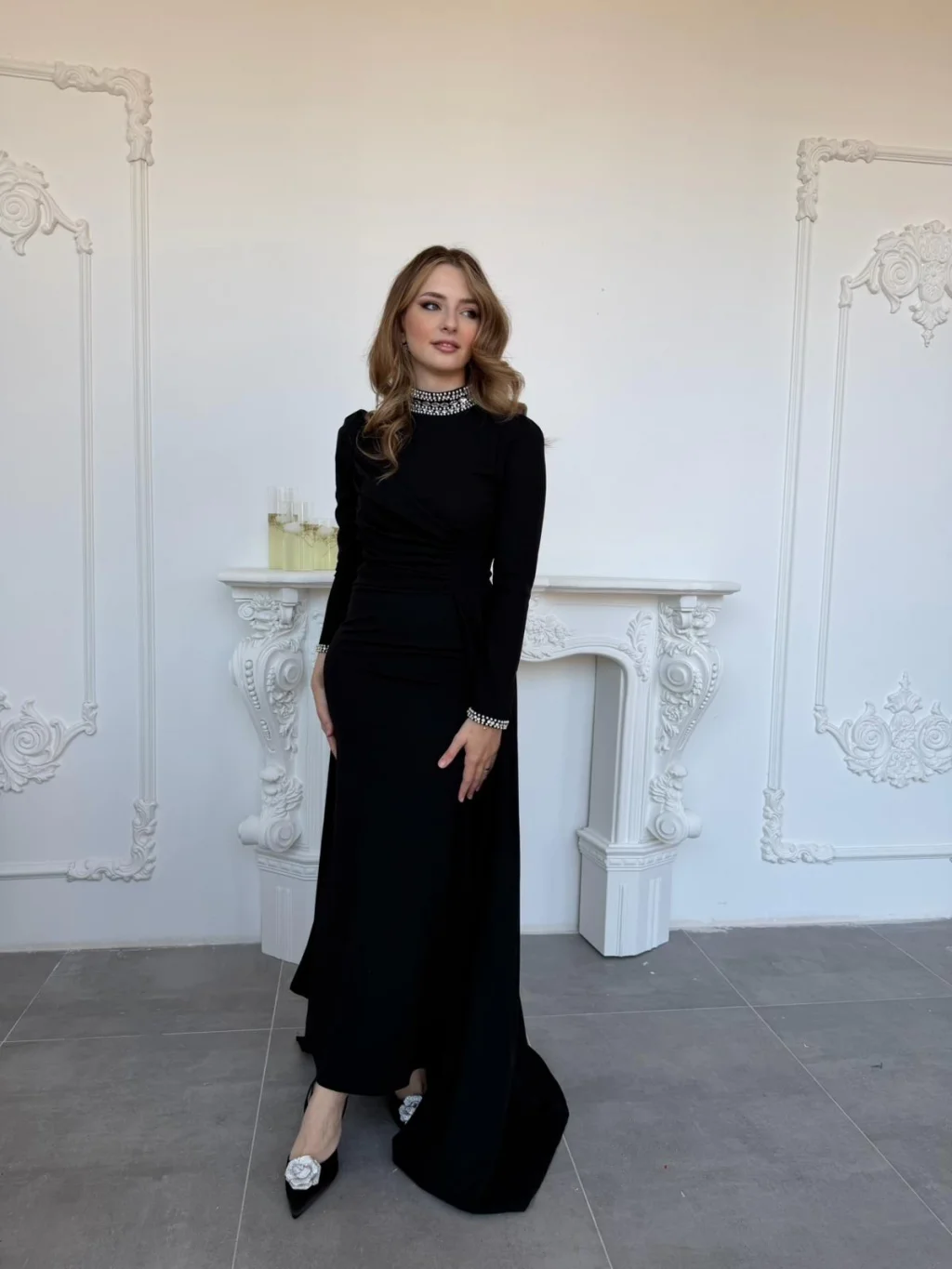 ✨ Boğaz ve kol manşetlerinde inci taş işlemeler