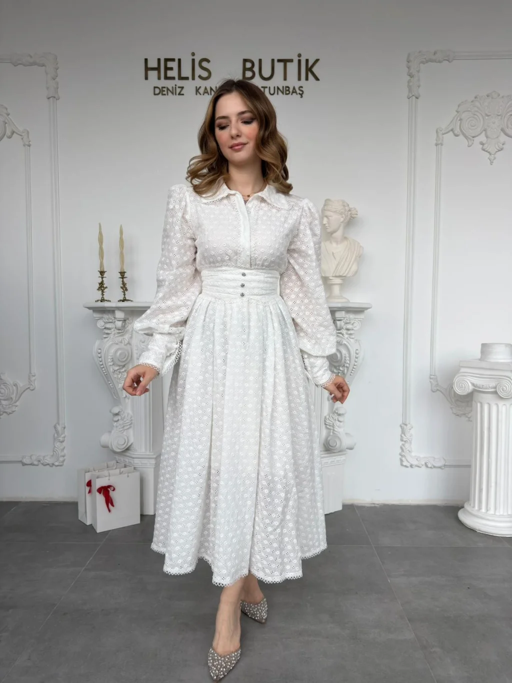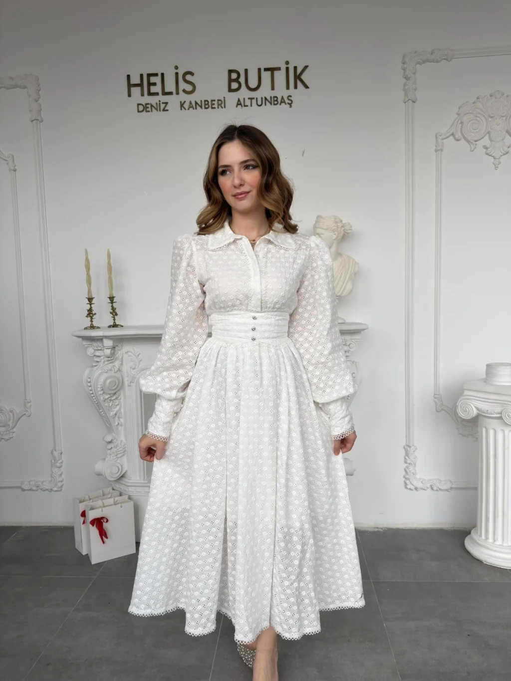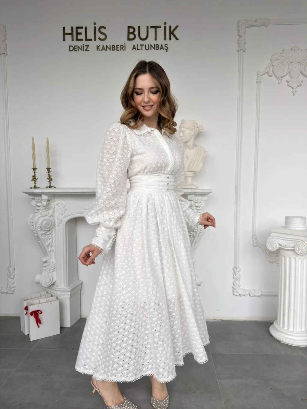 Zarafetin en saf hali beyaz fisto ile tanışmaya hazır mısın? Helis Butik’in özel koleksiyonundan çıkan bu eşsiz parça, gardırobunun en favori davet elbisesi olmaya aday. Romantik dokusu ve modern kesimiyle hem gündüz şıklığında hem de en özel akşam organizasyonlarında tüm bakışları üzerinizde toplayacak.