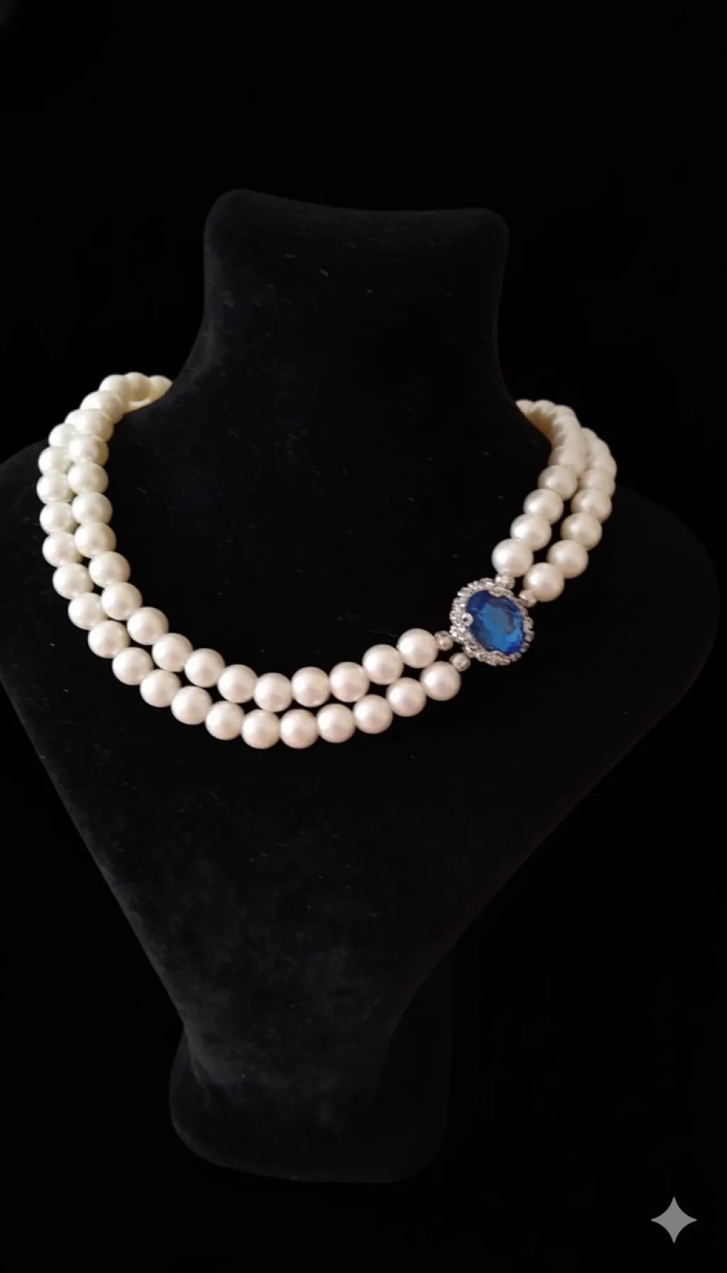 Ürün açıklamasıı Mavi Taşlı İki Sıra İnci Kolye