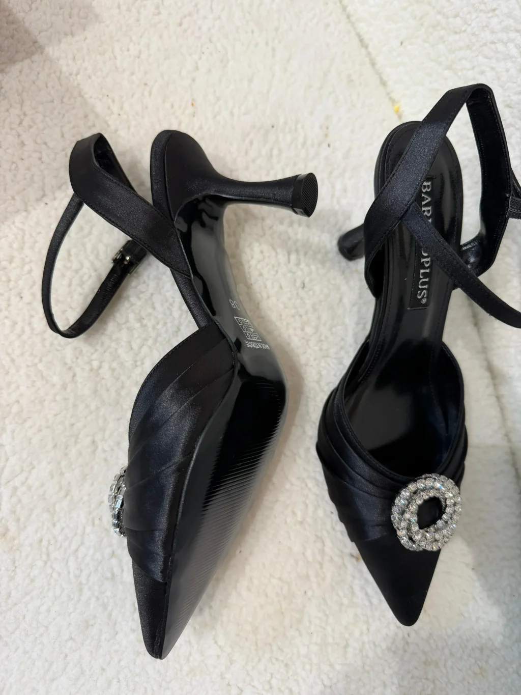 Parti koleksiyonuna özel tasarlanmış, şık ve göz alıcı bir görünüm sunar.; - Ayarlanabilir bantlı tasarımı sayesinde her ayak tipine kolayca uyum sağlar ve konforlu bir kullanım sunar.; - Saten dokusuyla zenginleştirilmiş dış materyal, parlak ve sofistike bir stil yaratır.; - Şık ve gece ortamları için idealdir; özel davetlerde ve kutlamalarda dikkatleri üzerinize çeker.; - Türkiye'de üretilmiştir, yerel işçilik ve kaliteyi temsil eder.; - İnce topuklu yapısı, zarif bir duruş kazandırırken, orta topuk boyu (9 cm) gün boyu rahatlık sağlar.;
