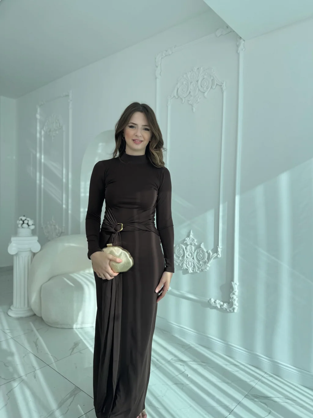 Zarif, sade ve aynı zamanda etkileyici görünmek isteyen kadınların tercihi olacak bu elbise, modern tasarımıyla dikkat çekiyor. Bedeninizi kusursuz şekilde sararak şıklığınızı öne çıkarıyor. Bel kısmındaki tokalı detay elbiseye zarif bir hareket katarken, uzun boyu ve dökümlü yapısıyla özel günlerde de günlük şıklıkta da rahatlıkla kullanılabiliyor. Gardırobunuzun kurtarıcı parçalarından biri olacak bu tasarım, hem bordo hem de siyah rengiyle farklı zevklere hitap ediyor.